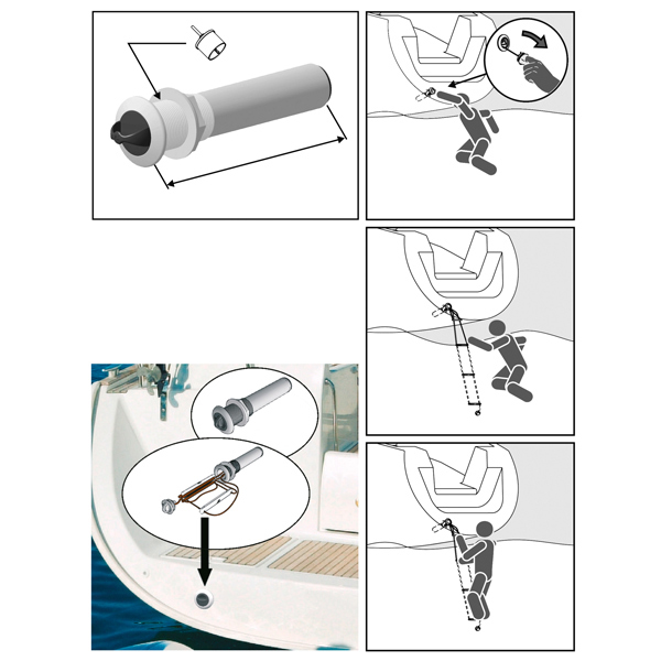 Består av 3 polypropylensteg och ett handtag i rostfritt stål monterat på Ø 3 mm polyesterlina. Stegen förvaras i ett polyamidrör med grått polypropylenlock. De nödställda tar bort locket, tar ut stegen och klättrar uppför den.\n\n· Låg vikt\n· Enkel att montera, som en Ø 48 mm-genomföring\n· Akterspegel eller monterad precis ovanför vattenlinjen